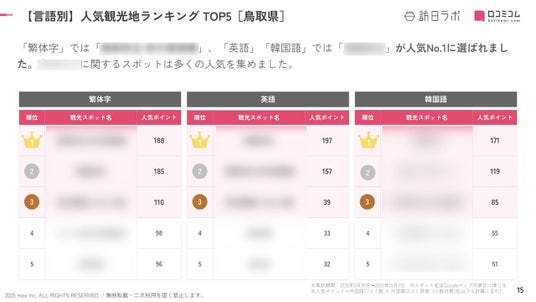 - 調査対象:訪日ラボが独自に選出した鳥取県の観光スポット(計1,218箇所)