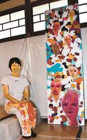 作品展のテーマは「平和」。日常の小さな安らぎの積み重ねが世界の平和につながっていくとの思いで会場をデザインしたといい、温かみのある色彩の作品が並ぶ。