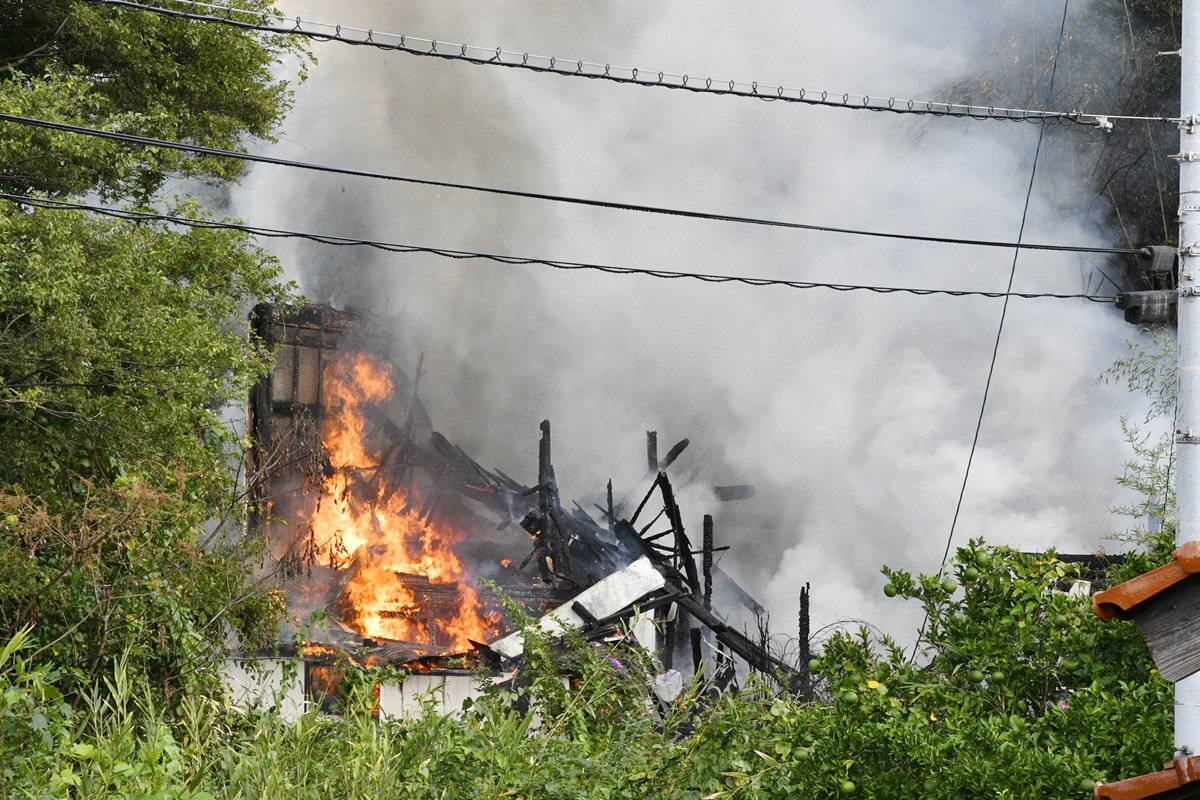 江津署などによると、近くに住む男性が黒煙に気づいて119番したという。現場は市立渡津保育所の北東50メートルの住宅地の外れ。