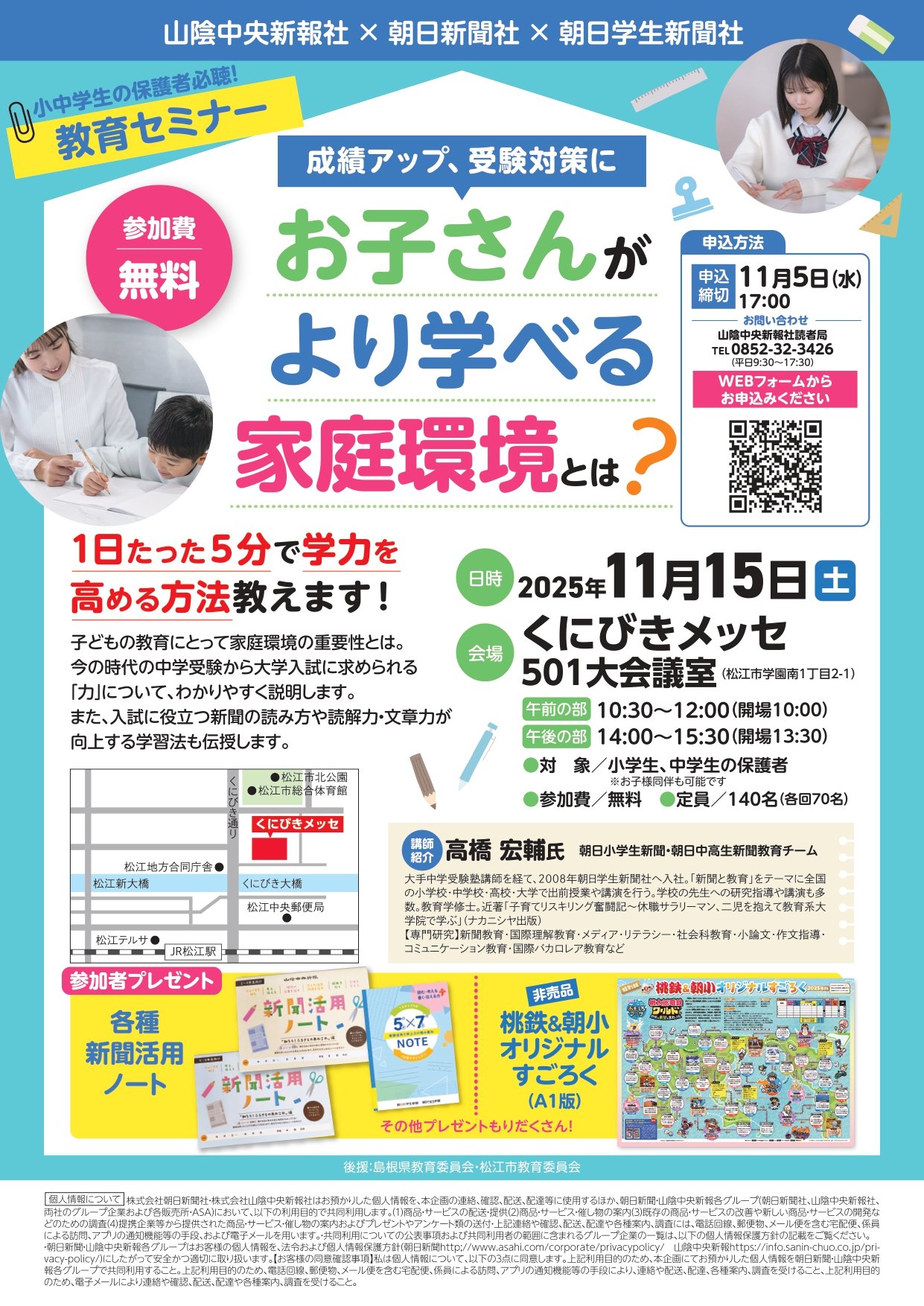 お問い合わせ/山陰中央新報社読者局 TEL0852-32-3426(平日9:30~17:30)