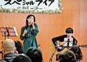 【奥出雲】島根県奥出雲町出身のアーティスト、松田千明さん(25)=東京都目黒区=のライブがこのほど、同町横田の横田相愛教会であり、心地よい歌声が来場者約50人を魅了した。
