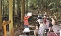 鎌手峠からの眺望を楽しみ、階段状の石畳などを通って街道の歴史に思いをはせ、木部分教場跡(同市木部町)まで進んだ。