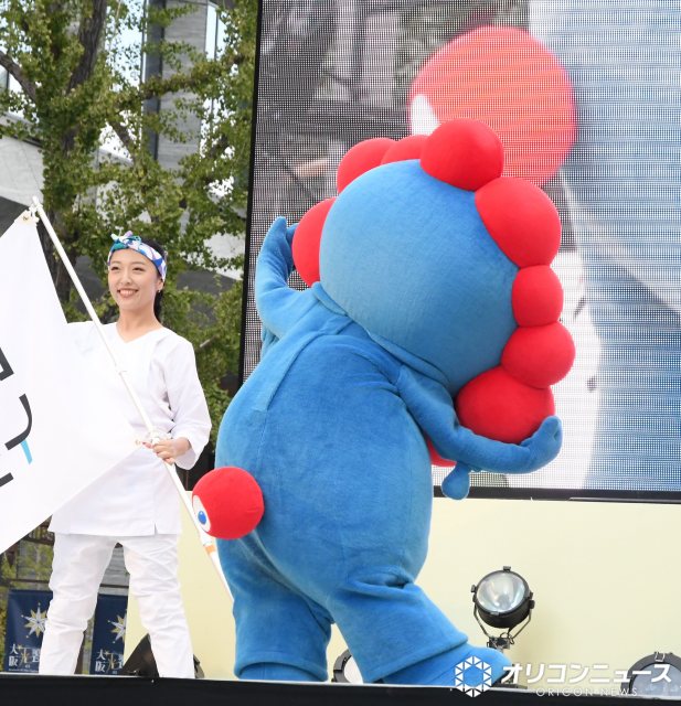 【写真多数】お尻ふりふり…御堂筋を1キロ歩いてゴールテープを切ったミャクミャク