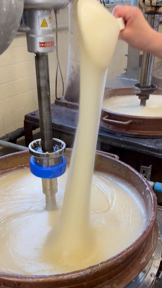 若草の求肥を銅釜で練る