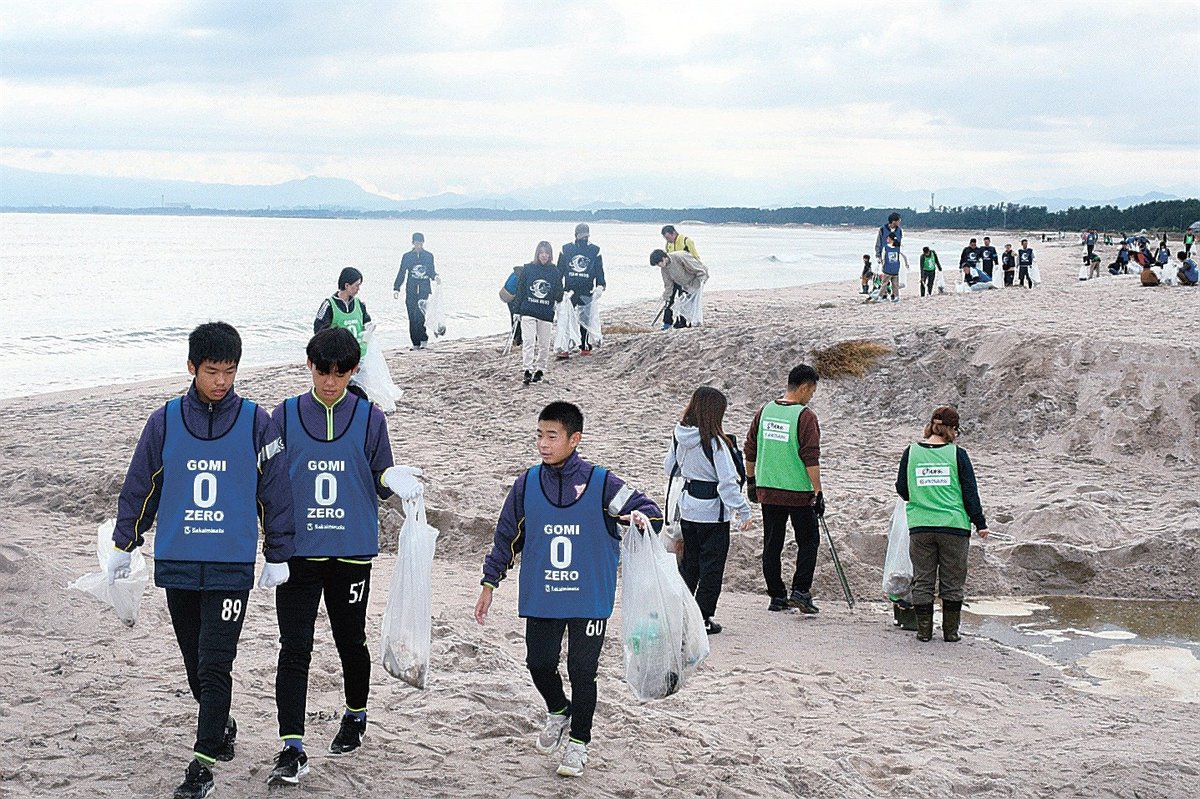 【境港】境港市新屋町の境港公共マリーナ周辺の砂浜などでこのほど、清掃しながら自然と親しむイベント「シーサイドクルーンアップ弓ケ浜’25」があった。参加した252人が、ごみを拾いながら郷土の自然に愛着を深めた。