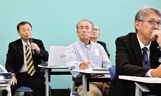 第1弾としてこのほど、郷土史家の下村明雄さん(69)=浜田市高田町=を招いた講座を開いた。下村さんは、江の川は江津町から広島県三次市まで高低差が大きくなく、船で行き来できた▽直線的な海岸があり河口に広い平野が形成できなかった▽江津市周辺には良質な粘土層があり窯業を盛んにした-など地形や歴史を紹介した。集まった経済人や高校生ら22人は熱心にメモを取った。