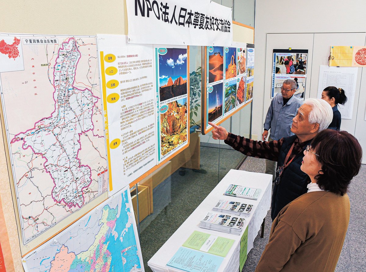 展示は県民に寧夏への関心を持ってもらおうと、NPO法人日本寧夏友好交流協会(松江市古志原6丁目、森井三郎会長)が企画した。友好提携した1993年から続く相互交流の歩みを写真や年表などにまとめた。