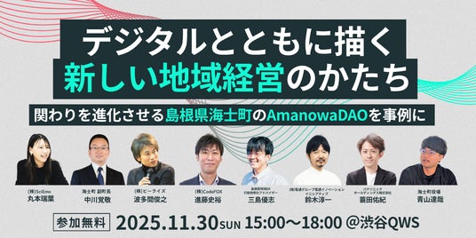 2025年11月30日(日)、一般財団法人 島前ふるさと魅力化財団(所在地:島根県隠岐郡海士町、代表理事:大江和彦)は、東京都渋谷区の渋谷QWSにて、「【関係人口×デジタルを語る夜】デジタルとともに描く新しい地域経営のかたち」をテーマにトークイベントを開催します。