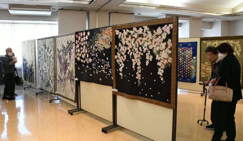 【大田】パッチワーク教室を主宰する大田市大田町の柳沢時子さん(74)の作品展が8日、同町の大田商工会議所大ホールで始まった。四季の彩りを表現した約200点が来場者を楽しませている。10日まで。