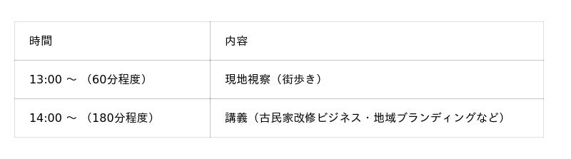 - テーマ:地域の再構築と、地域内外との連携によるまちづくり、観光事業者・観光地の現地を知る