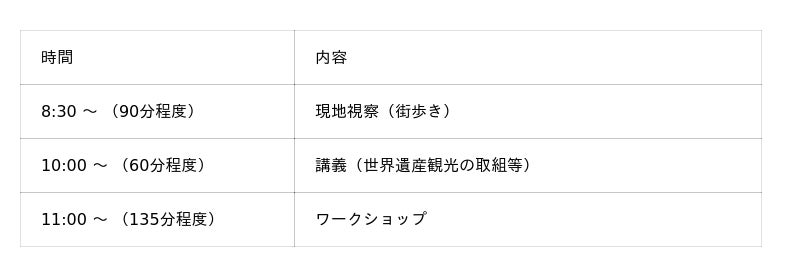 今年度は、9月9日に開講し、当塾で得た知識を実践につなげ、受講生による観光振興策を具体化を目的とした視察合宿・現地調査を下記の通り実施いたしますので、お知らせいたします。