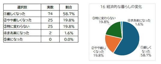 昨年の今頃と比較して「経済的な暮らし向きが厳しくなった」と回答した人が約8割おられます。約2割は「特に変わらない」と回答されていますが、昨年時点ですでに(物価高等により)相当厳しい状況にあった、ということは再確認しておきたいところです。