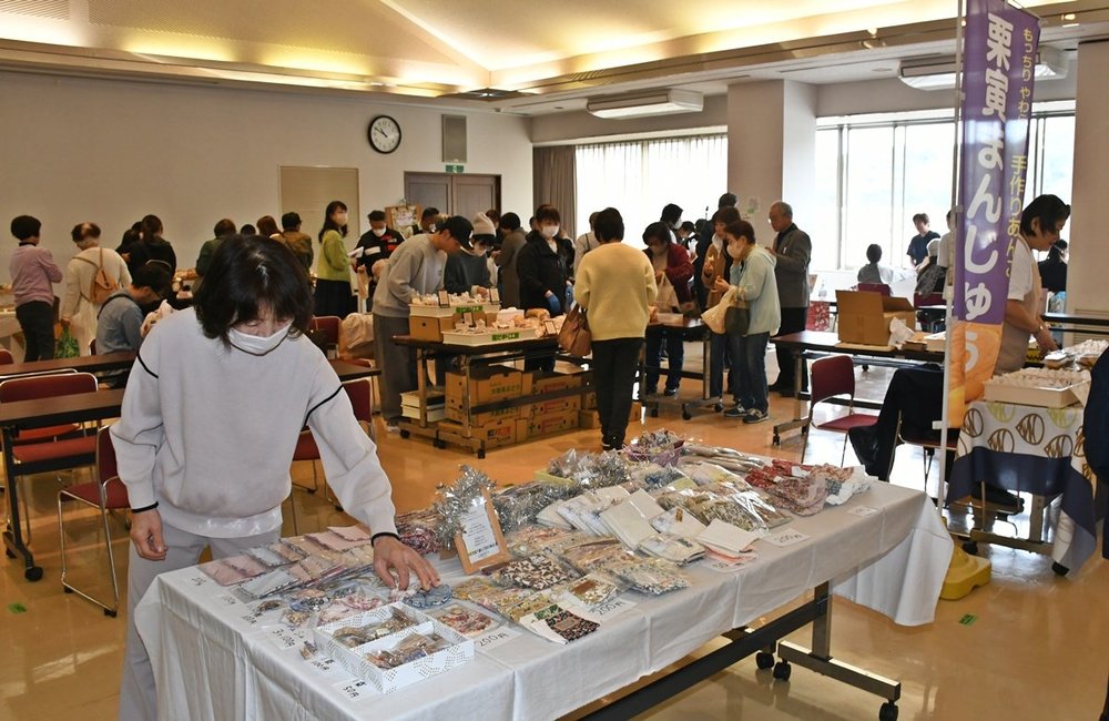 大田商工会議所創立70周年の記念事業「秋うららフェスティバル」が24日、大田市大田町の同商議所であった。ブランド化の取り組みを進める市産アナゴ「大田の大あなご」の関連商品のアピールや、地域経済を担う飲食、物販、サービス業の市内50の事業所・団体が出店し、会場を彩った。
