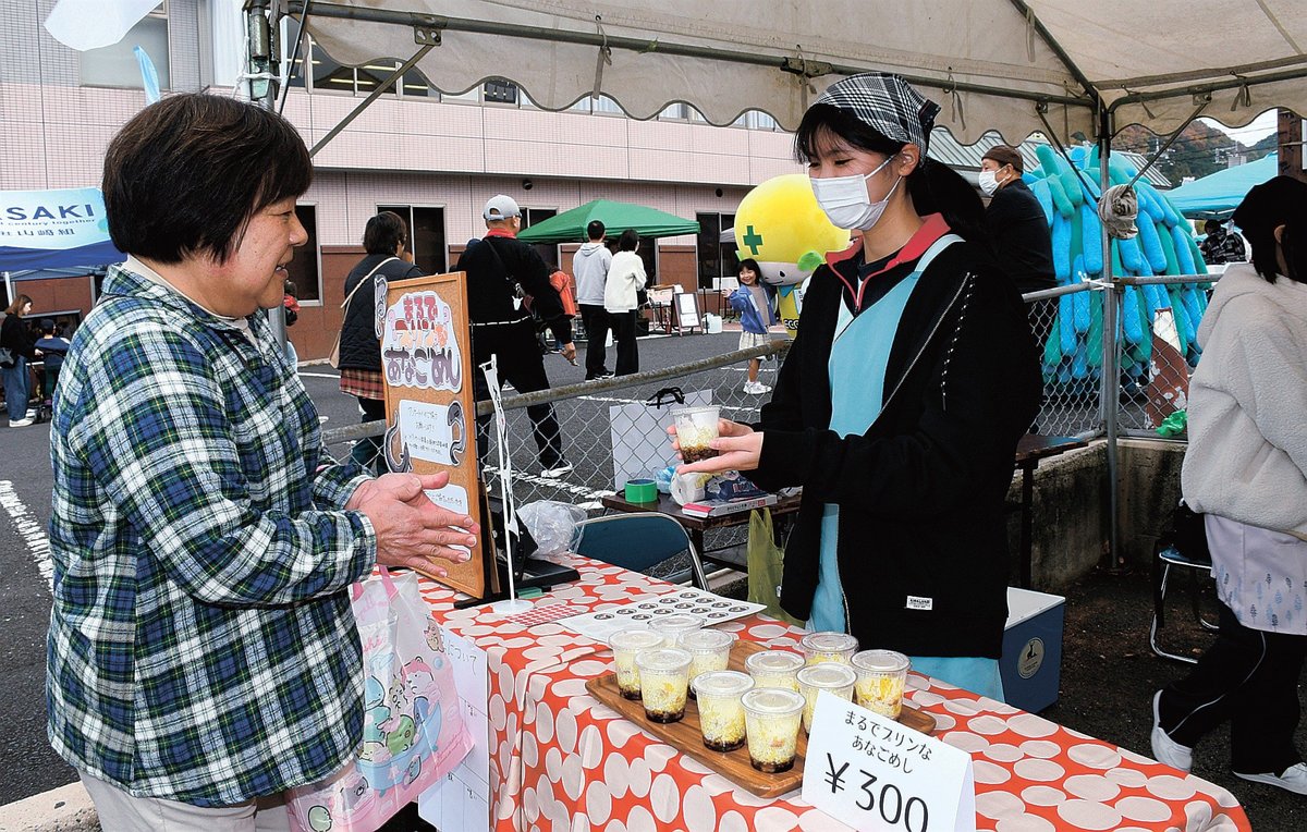 アナゴのブランド化は、会員企業が飲食や加工品を中心にした関連商品の開発・販売を進めている。会場には焼きそばやカツ、丼、などのアナゴ料理が勢ぞろい。大田高校の生徒たちが開発したプリンを模したあなごめしの販売もあり、人気を集めた。
