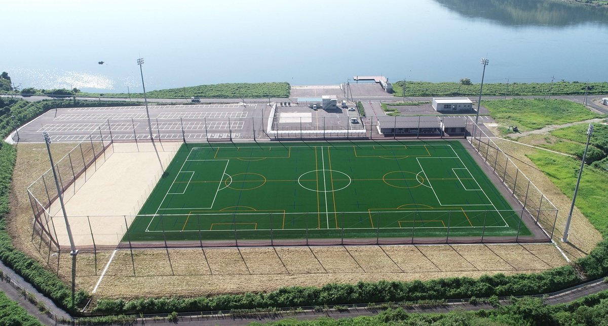 人工芝グラウンド(約9千平方メートル)は、サッカーの一般用1面や少年用2面、ラグビー用1面が確保できる。用途制限はなく、グラウンドゴルフにも使用できる。事業費約10億円のうち、防衛省の防衛施設周辺民生安定施設整備事業補助金5億8千万円を充てた。