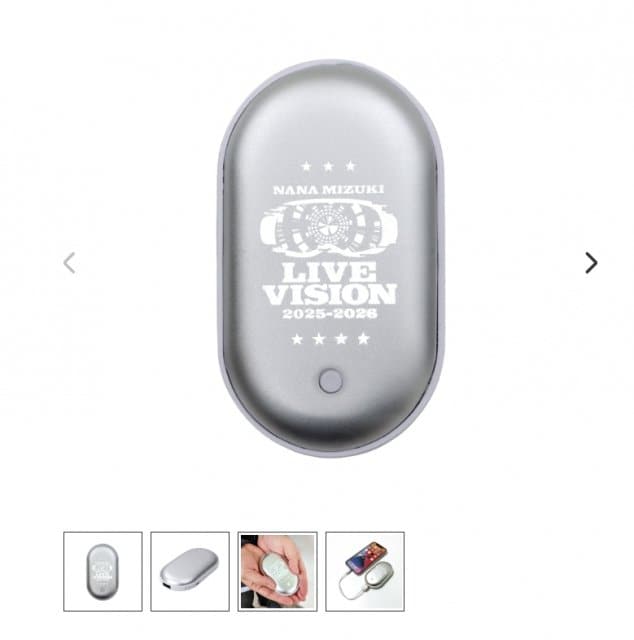 公式サイトでは「オフィシャルグッズ「VISION☆充電式カイロ」、仕様不備のお詫びと使用中止のお願い」と題して「2025年10月28日(火)より通販サイト「mono stand」にて販売しておりました『NANA MIZUKI LIVE VISION 2025-2026』のオフィシャルグッズ「VISION☆充電式カイロ」において、使用中に異常な発熱が発生した事象が確認されました」と報告。