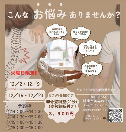 クレイ美容・整体による整体体験です。美容か整体の体験にVANSAN出雲店のランチセットかカフェセットを組み合わせる、合計3900円のお得なセットプランもあります。申し込みは電話090(3634)1954。