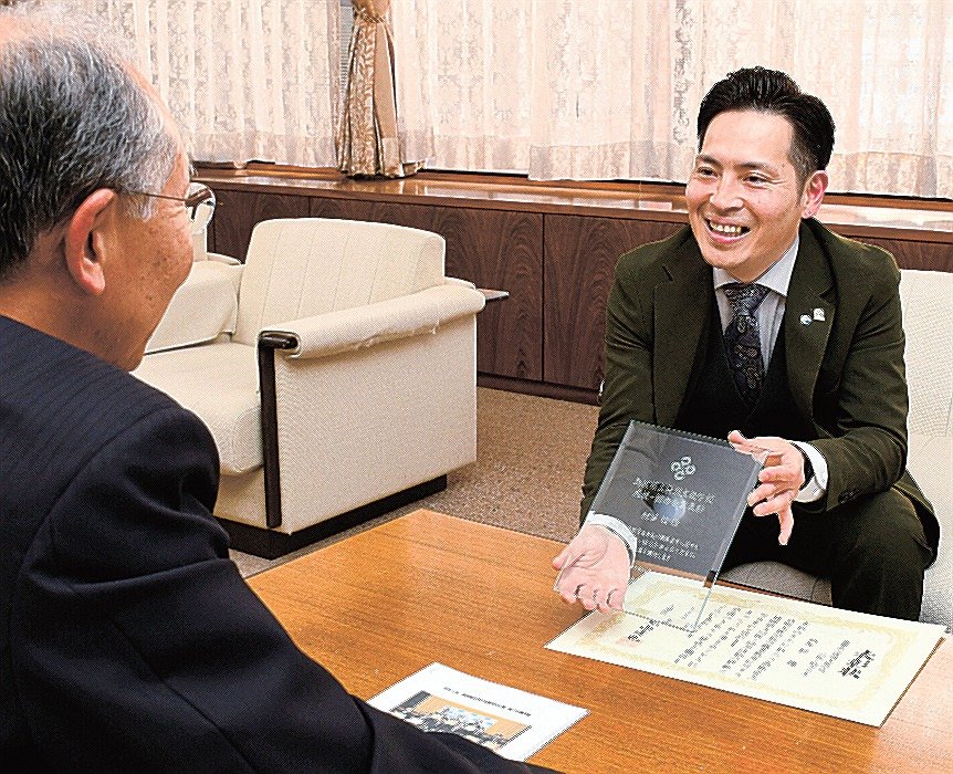 大田市長久町の飲食店「麺屋 松」が特別支援学校への職業教育や就業に貢献したとして島根県知事表彰を受けた。代表の松下玲司さん(44)がこのほど、大田市役所を訪ねて受賞を報告した。