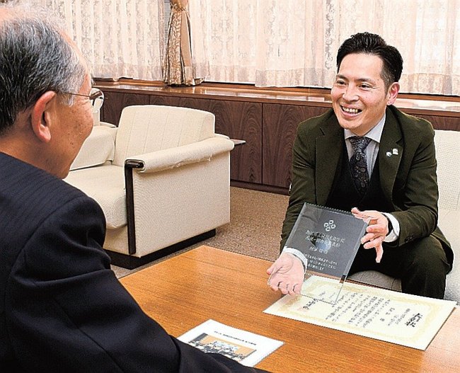楫野弘和市長を訪ねた松下代表は、他市の飲食店では人手不足などから従業員の半数以上が障害者雇用の店もあることを紹介した。
