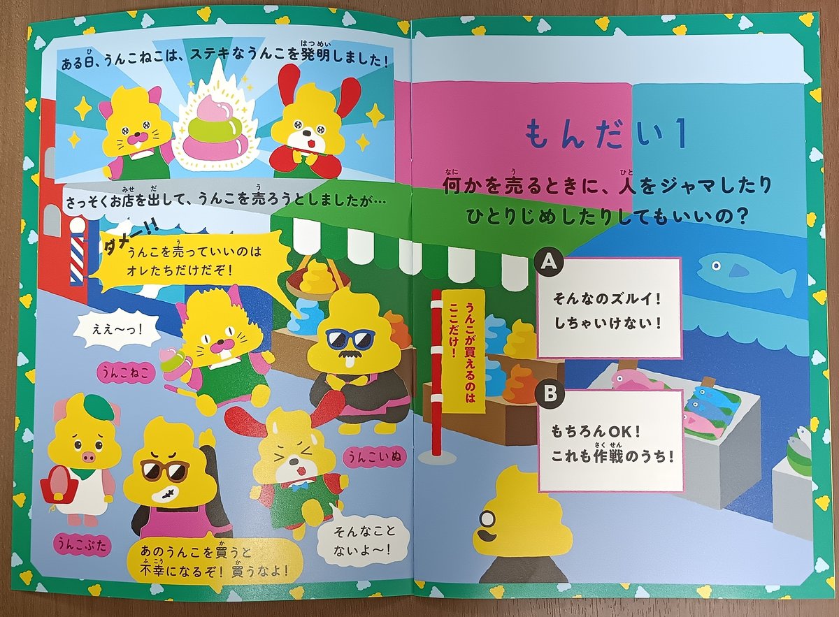 合わせてカラフルな小冊子を紹介してくれた。子どもたちに人気の「うんこドリル」と連携した「競争のルール」。名物キャラクターの「うんこ先生」が絵を交えて公取委の役割を解説している。“お堅い”イメージとは正反対。これなら親子で理解を広げられそうだ。