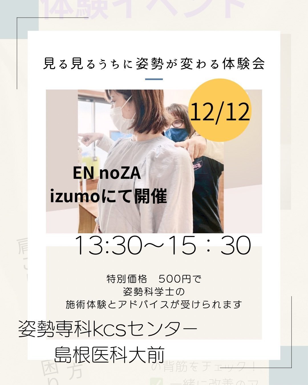 出雲市塩冶町にある姿勢調整専門センター。特別価格の500円で姿勢科学士の施術体験とアドバイスを受けることができます。当日参加も大歓迎です。