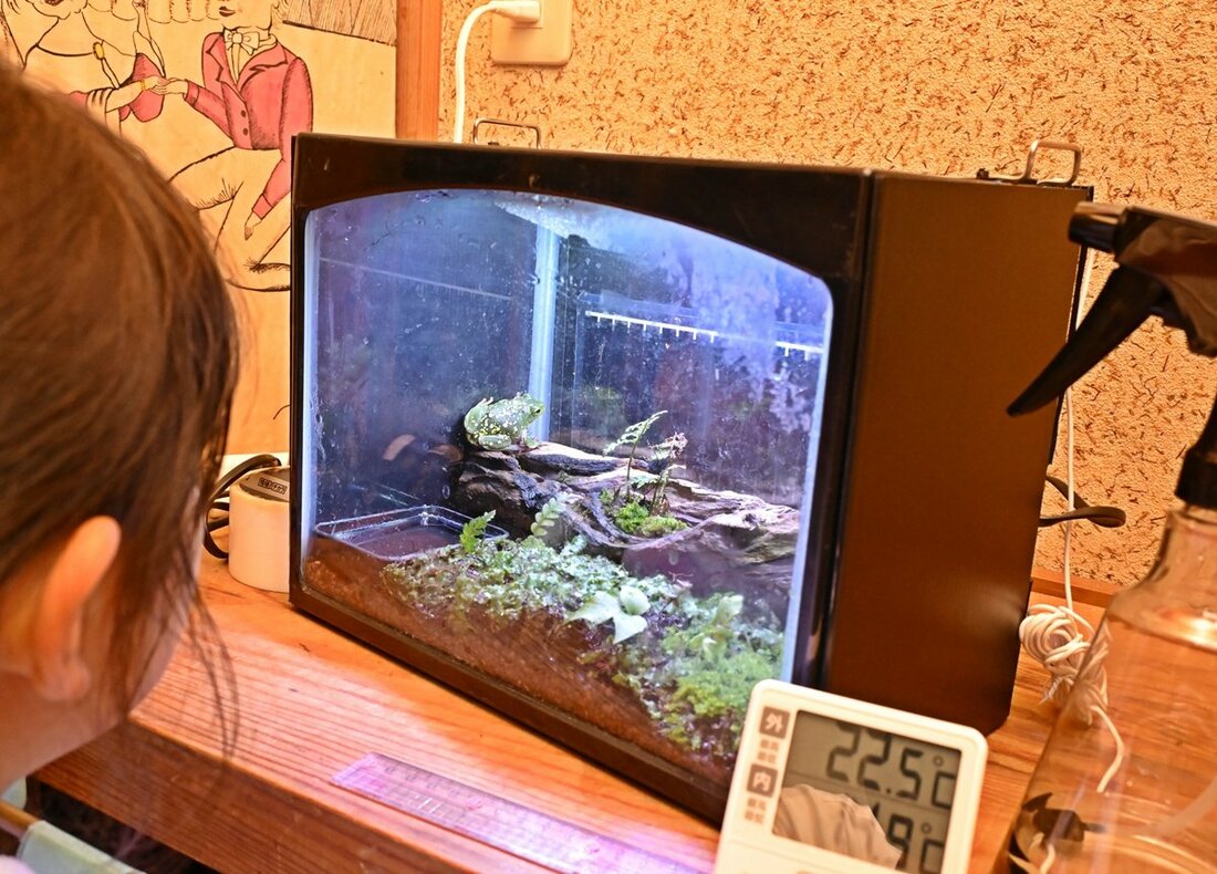 カエルの色彩変異に詳しい宍道湖自然館ゴビウスの飼育展示係の寺岡誠二さん(53)は、小さな黄色の斑点がある個体はよく見られるとしつつ「ここまで大きな斑点があるのは山陰地方では直近25年で3度ほどしか見つかっておらず、極めてまれ」と説明。なずなさんは「ケロちゃん」と名付けて自宅で飼育しており「見つけたときは黄色くて驚いた。長生きしてほしい」と話した。
