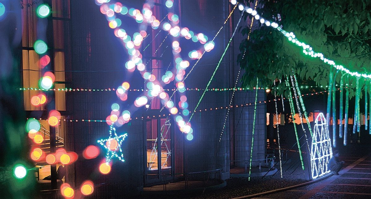松江の冬の夜に彩りを添える恒例のイルミネーションイベントが、松江市西津田6丁目のさんびる文化センタープラバホールで開かれている。25日までで、訪れた市民らの笑顔を照らしている。