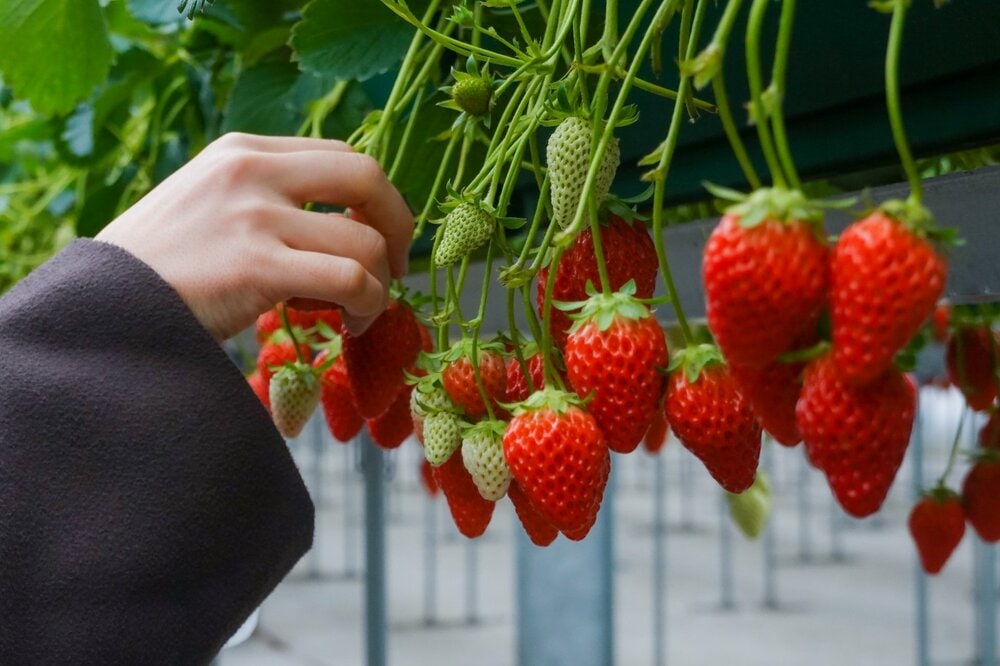 TSK農縁(松江市)が出雲市大社町北荒木でイチゴ狩りなどを楽しめる複合施設を整備し、1月上旬に営業を開始します。5万株のイチゴを空中プランターで栽培する中国地方最大規模。年中収穫できる品種のほか、他の果物も栽培して年間を通じて旬を味わえる拠点を目指します。