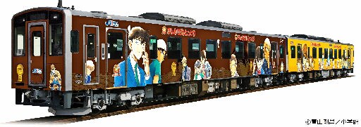 「まんが王国とっとり」の建国を記念し、2012年に登場したコナン列車は現在、怪盗キッドなどを描くピンク色車両と、ヒロイン毛利蘭で人気の青赤車両の2タイプで運行。15年度に登場したピンク色が引退し、新デザインに衣替えする。