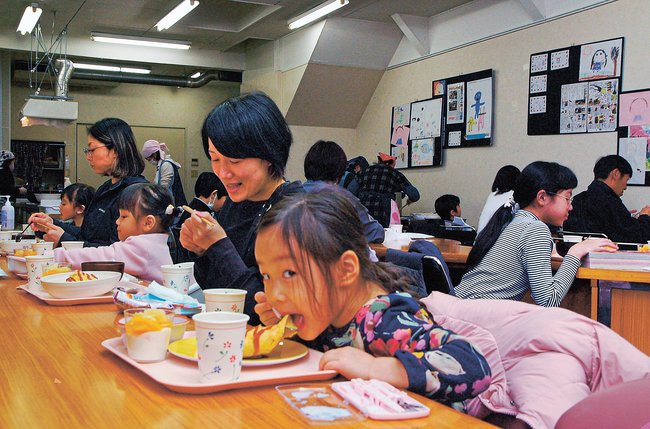 28人(大人11人、子ども17人)が参加。オムライスと大根サラダ、野菜スープ、ヨーグルトゼリーを味わった。食後はお絵描きや読書、ゲームを楽しんだ。子どもたちは認定NPO法人「ハーモニーネット未来」(岡山県笠岡市)提供の児童書を1人1冊持ち帰ったほか、お菓子の詰め合わせのプレゼントもあった。法吉小4年の内田琉雅さん(10)は「オムライスがおいしかった。本のプレゼントでは好きな本を見つけることができた」と笑顔で話した。
