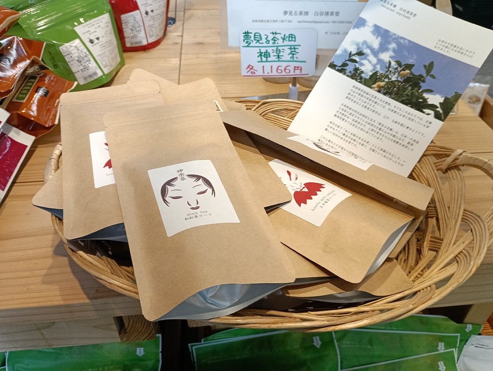 神楽茶は、茶畑の持ち主が地元の神楽社中を率いていたことから名付けた。「神楽と人と農の関係性を、お茶と共に伝えたい」と上原さん。道の駅で買った和紅茶は、関係者の思いと期待がこもった優しく甘い味がした。(健)