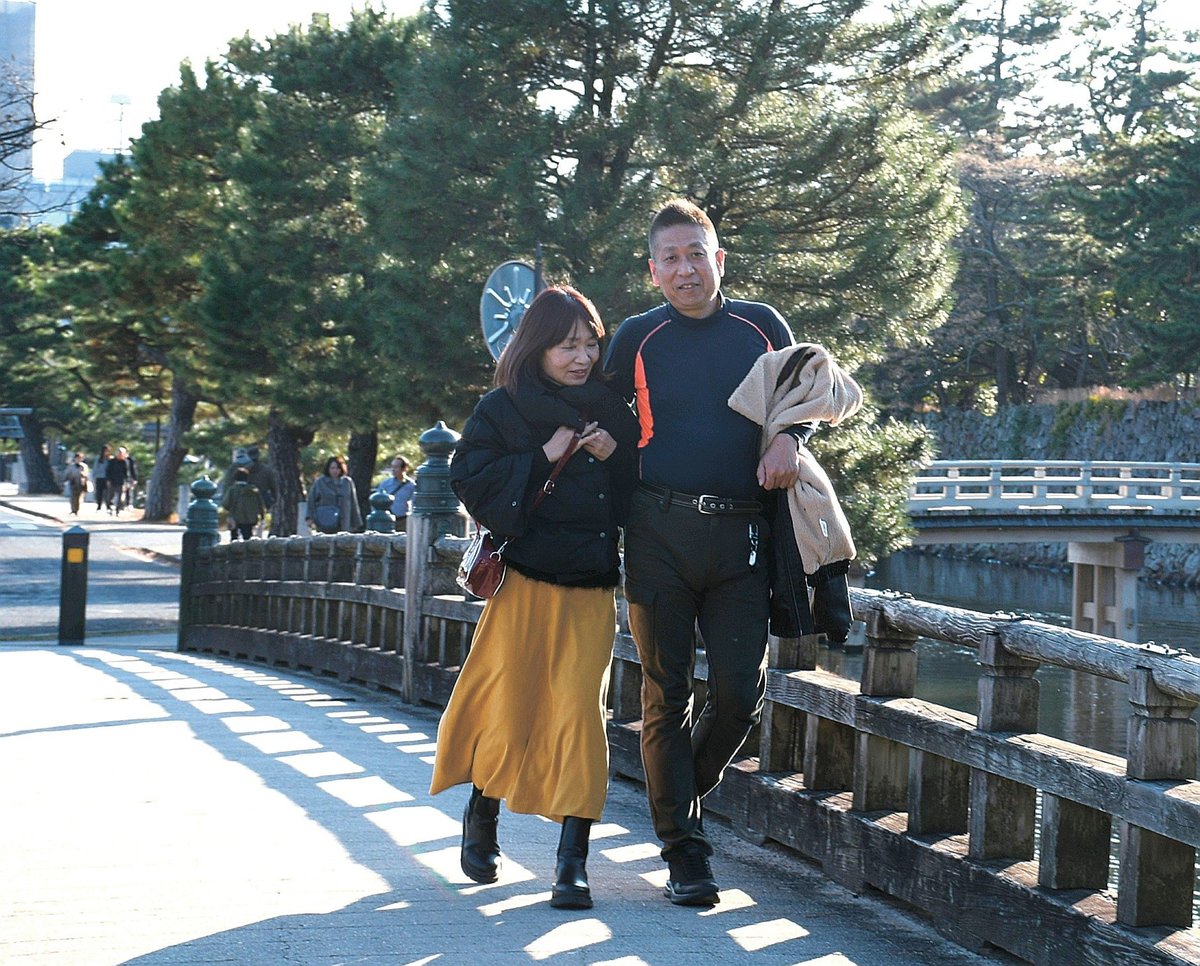 広島市安佐北区から観光に来た会社員、細川卓則さん(56)は「妻とNHK連続テレビ小説『ばけばけ』の舞台を歩きたかった。天気が良くて気持ちが良い」と笑顔だった。(多賀芳文)