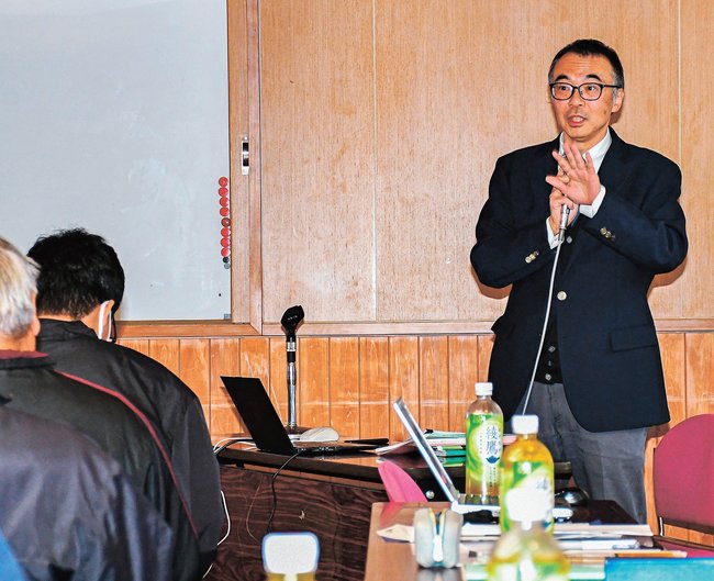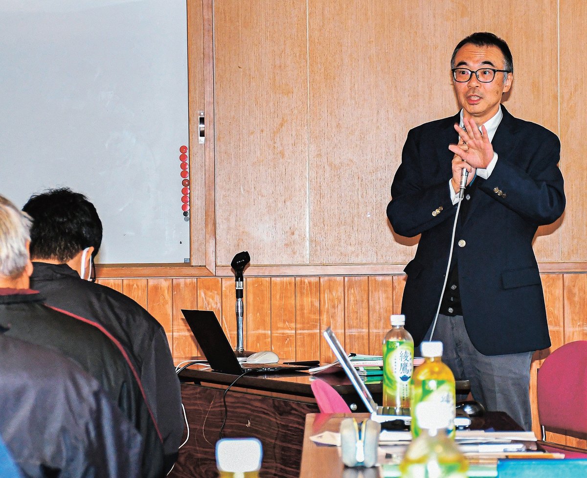 講演会は公益財団法人・鉄の歴史村地域振興事業団が主催した。同財団が市教委の補助金を活用し調査を進める「菅谷たたら山内の総合文化調査」で2024年度に刊行した最新の調査報告書に基づいた報告会で、約40人が聴講した。