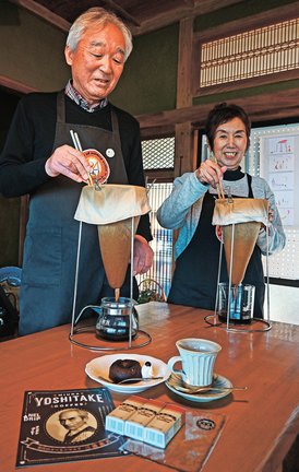 寄付額は1人3400円、2人6700円。それぞれコーヒーを2店舗で提供するほか、2700円でコーヒーを使ったはがきやようかんも贈るといったプランがある。仲介サイト「ふるさとチョイス」でヨシタケコーヒーと検索して手続きを行うと、申請者に電子チケットを送付。現地で飲める日を2店舗のどちらかで予約してもらう。