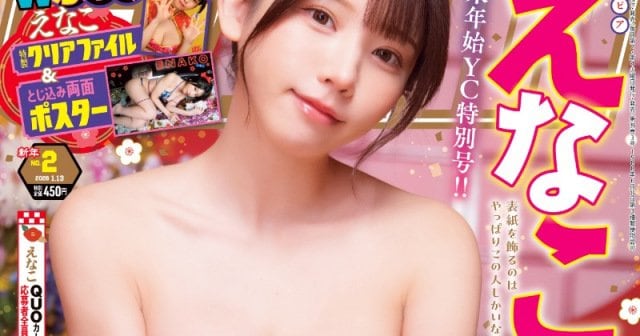 えなこは色鮮やかな着物がはだけ、下着のさらしがあらわとなった妖艶なショットで表紙を飾っているほか、来年の干支をモチーフにした悩殺ショットを収めている。