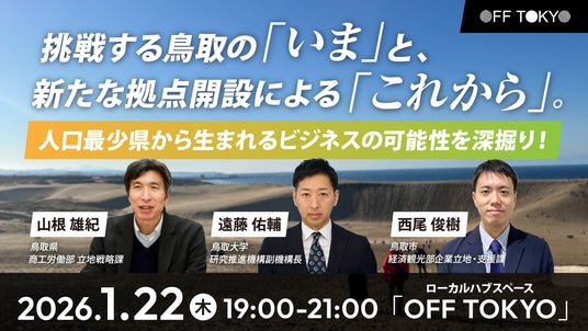 イベント名:挑戦する鳥取の「いま」と、新たな拠点開設による「これから」。人口最少県から生まれるビジネスの可能性を深掘り!