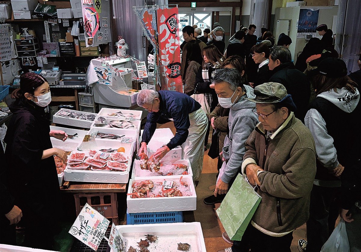 年の瀬を迎えた30日、浜田市原井町のはまだお魚市場は、新鮮な海の幸を求める帰省客や県外客らでにぎわった。