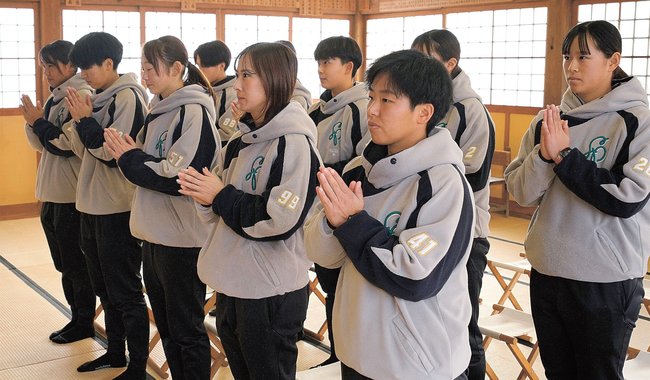 島根県川本町の女子硬式野球クラブ「島根フィルティーズ」の選手とスタッフが7日、同町川下の三島神社を訪れ、今季の中四国リーグ「ルビー・リーグ」の2部優勝に向けて、必勝を祈願した。