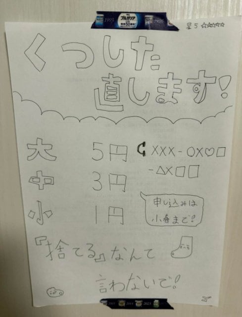 穴の開いた靴下を直そうとする娘さんの姿を捉えた投稿がThreadsで注目を集めている。投稿したのは、tabemono_dokushoさん(@tabemono_dokusho)。「娘が商売始めました。何卒よろしくお願いいたします。」というコメントとともに公開された様子は、3900件以上のいいねが集まり、「かっ可愛い…!!字はきれいだし発想素敵だしイラスト全部可愛い!!」「値段がリアル(笑)」などのコメントが寄せられ、多くの利用者の心を和ませている。そこで、娘さんが始めた“靴下直し店”の背景について話を聞いた。
