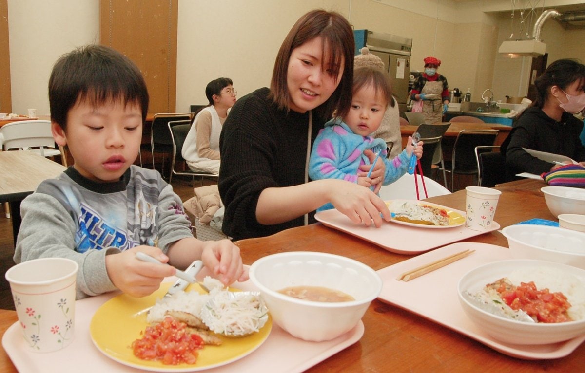 23人(大人9人、子ども14人)が参加。レンコダイのムニエル、豚汁、春雨サラダを味わった。食後は折り紙やお絵描きを楽しみ、皿洗いを手伝う子どももいた。母衣小学校4年の吉永すみれさん(10)は「バジルソースのかかった魚料理がとてもおいしかった」と話した。レンコダイは、かめや釣具(本社・広島市)の松江、出雲、鳥取、米子の計4店の社員が、研修の一環で鳥取県琴浦町赤碕沖の日本海で釣りを行い、同社が提供した。