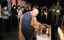 出雲市立大社幼稚園の園児による「吉兆行事」が17日、同市大社町内であり、園児24人が地域の伝統...