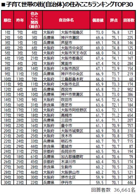 【画像】子育て世帯の街の住みここちランキング2025(関西版)詳細順位