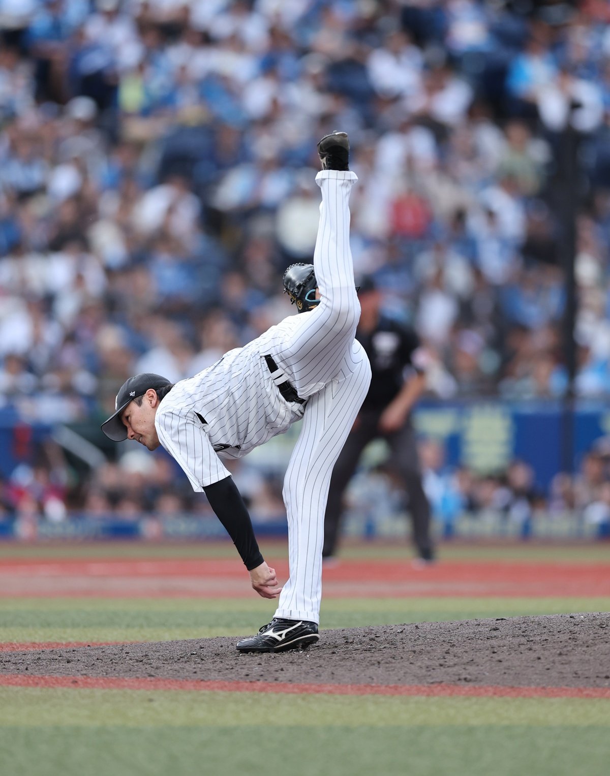 独特のフォームは、プロ野球・千葉ロッテマリーンズの左腕・高野脩汰(27)=出雲商高出身=の代名詞。直球の最速は149キロでプロでは速球派とは呼べないが、初速と終速の差が小さく、捕手のミットに届くまで勢いが落ちない。打者に襲いかかるようなボールだ。