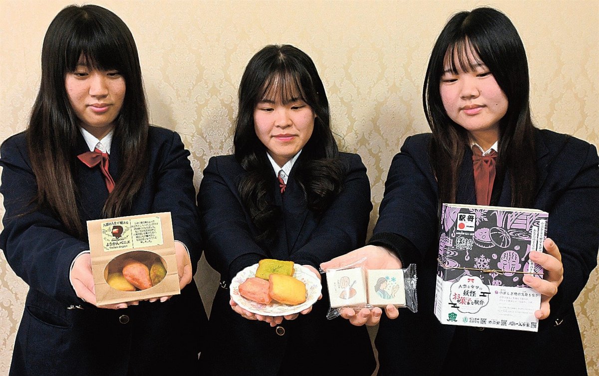 NHKの連続テレビ小説「ばけばけ」の放送に合わせて、松江農林高校(松江市乃木福富町)の3年生が地元企業と協力し、小泉八雲ゆかりの二つのお菓子を開発した。地元をPRし、盛り上がりを後押ししたい考え。
