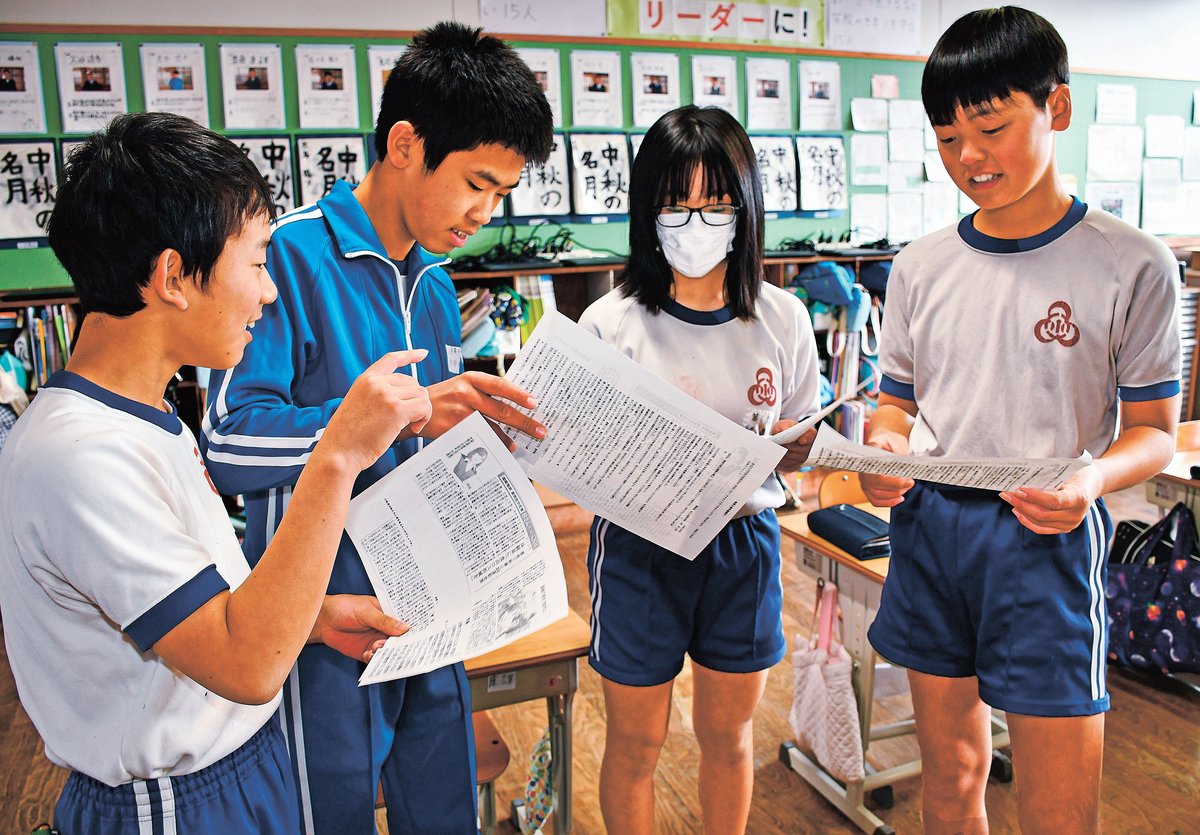 地域食材を使って味覚を学ぶ小学校の体験授業の記事について、児童は関連するコラムと読み比べ、書き方や性質の違いを学んだ。記者が伝えたいことに考えを巡らせ「食べ物の大切さや感謝の思いを伝えたかったのではないか」などと意見を発表した。斎藤康雄さん(12)は「記事を読むだけでなく、読んで考えるようにしたい」と話した。