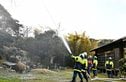 文化財防火へ放水、消火訓練 益田の古刹・大喜庵