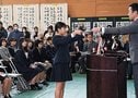 廃校舎の扉にペンキ塗り 江津、利活用促す