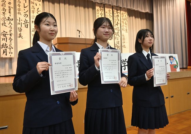 大量のデータから導き出されるAI(人工知能)の横書きの文字を便利に消費することが多い今、言葉一つ一つとの出会いを喜ぶ、みずみずしい感性はまぶしかった。長藤さんだけではない。言葉の力を信じて登壇した生徒たちに、審査を忘れ、ありがとうの拍手を送った。(衣)