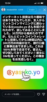 市企画課秘書係によると、いずれも広田市長の私的なアカウントで、25日にインスタグラムのストーリー機能で暗号資産投資などを促す投稿がされ、27日にはフェイスブックのメッセージ機能が使われていた。