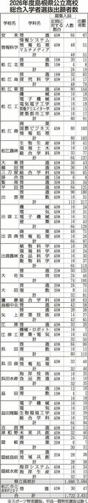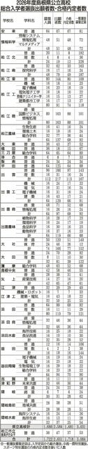 島根県の公立高、競争率0.81倍 一般入試、全日制出願状況 2026/2/6 10:47 保存 島根県教育委員会 島根県教育委員会が6日、2026年度県内公立高校の一般入試の出願状況を発表した。全日制の競争率は昨年度より0・02ポイント減の0・81倍で過去最低、22年連続で1倍を切った。 高校別、学科別の状況はこちらをご覧ください 無料会員に登録すると 付き記事が毎月5本読める 無料会員に登録する ログインする サービス内容を確認する 保存 記事を保存する この機能は有料会員限定です。保存した記事やフォローした特集をマイページでご覧いただけます。 有料会員になる ログイン 関連記事 総合選抜1718人合格内定 島根県公立高校入試 2026/1/30 04:00 島根県公立高入試、総合入学者選抜に2631人出願 中学3生生の約半数 2026/1/15 04:00 【データism】県立高校全39校の大学合格者数の変化は? 過去5年分をデータベース化<大学受験編> 2025/10/5 20:05 島根県立高2026年度定員 松江北、松江南 1学級減 中学生減少など踏まえ 2025/9/5 04:00 島根県の公立高、競争率0.81倍 一般入試、全日制出願状況 2026/2/6 10:32 特集・連載 竹島のアシカ猟 映像公開 領土・主権展示館拡張 2025/11/15 04:00 大学生の力作86点 三隅で石本正日本画大賞展 2025/11/13 04:00 島根大お笑いサークル「あちゃらか」から2組がM-1初戦突破 狭き門、2回戦は敗退も手応え 2025/11/12 04:00 音楽バンドと一緒に歌う 山陰中央新報 子どもご縁食堂 <9日に48回目を開催> 2024/10/11 04:00 世代を超えて楽しむ 地域に広がるバウンスボールの輪 雲南市加茂町 日野勝己さん 地元で育つミライのチカラ 島根県立江津工業高校 歴史と人をつなぐ語り部 荒神谷ボランティアガイドの会 会員 長廻 三枝子さん 海士町で見つけた原点――母の言葉がつないだ未来
